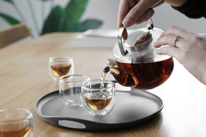 Brewing tea feels indulgent, yet tea is one of the healthiest drinks you can make for yourself. Share your love of intoxicating green teas and flavoursome herbal teas with this glass-bodied teapot. This thoughtfully designed set is meant to be shared.